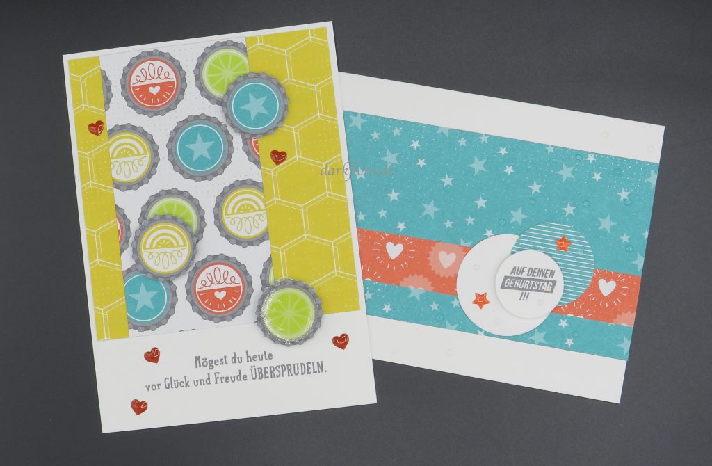 Diese beiden Karten sind mit dem Designerpapeir „Einfach spritzig“ entstanden.