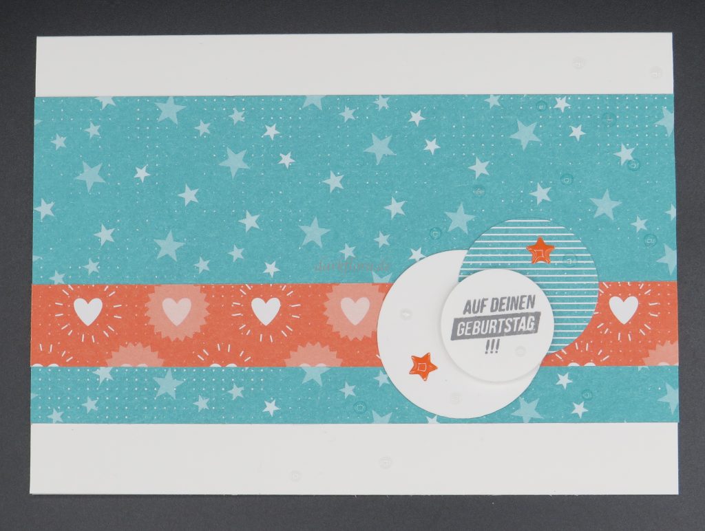Für die zweite Karte habe ich einfach ein paar Kreise ausgestanzt und auf den Streifen Designerpapier drapiert.