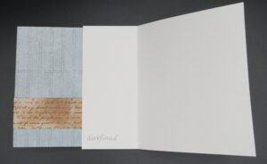 So habe ich auf der Seite, auf der ich die Front angebracht habe im Inneren nur einen kleinen Teil der Grundkarte, aber man kann auch noch etwas von dem schönen Designerpapier in der Karte sehen.