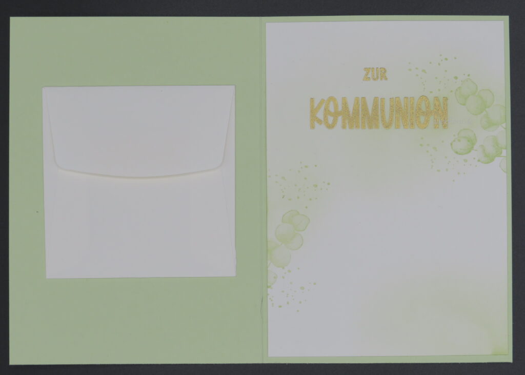 Die Karten möchte ich euch natürlich hier zeigen. Starten möchte ich mit einer Kommunion-Karte, die ich an das Design der Einladung angepasst habe.