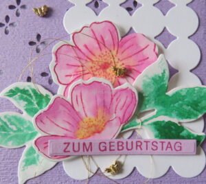 Beim zusammensetzen auf der Karte habe ich noch goldenes Garn und ein paar Bienchen verwendet um der Karte etwas Glanz zu verleihen.