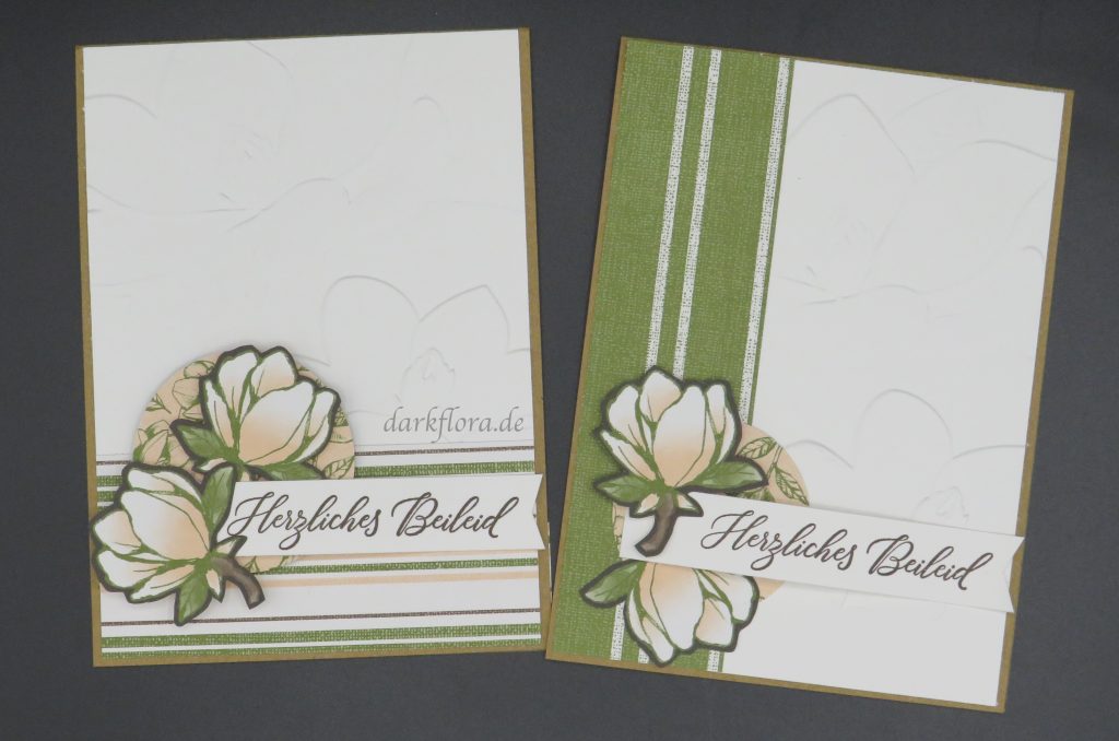 Meine heutigen Trauerkarten, die ich euch zeigen möchte, sind mit dem Designerpapier „Magnolienweg“ und dem Stempelset „Voller Mitgefühl“ entstanden.