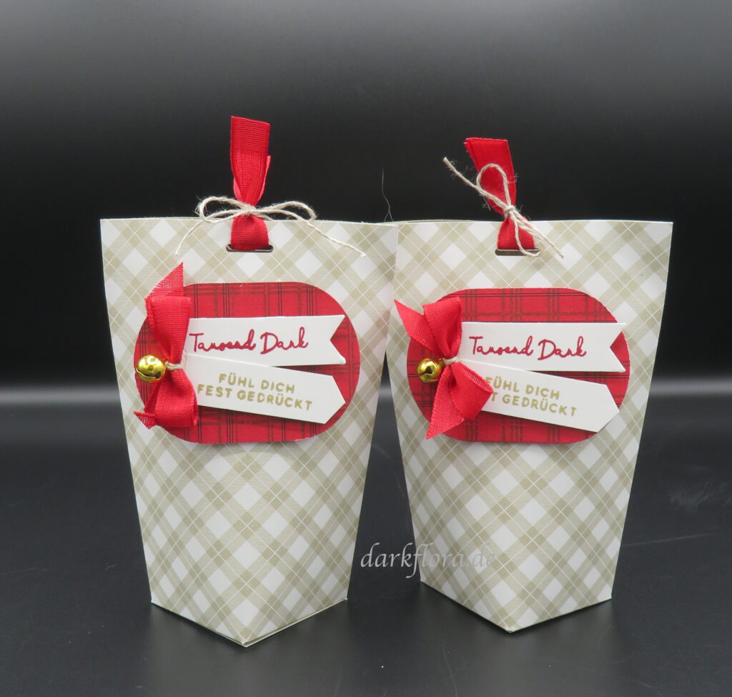 Heute möchte ich euch eine kleine Verpackung zeigen, die ich aus einem Stück Designerpapier „Weihnachtliche Prints“ gebastelt habe.