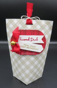 Heute möchte ich euch eine kleine Verpackung zeigen, die ich aus einem Stück Designerpapier „Weihnachtliche Prints“ gebastelt habe.
