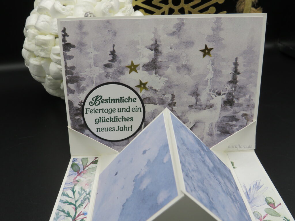Meine zweite Weihnachtskarte, ist eine Pop-up-Karte, die ich euch im letzten Jahr schon mal gezeigt habe. (oder sind es schon zwei Jahre her, ich weiß es nicht mehr)